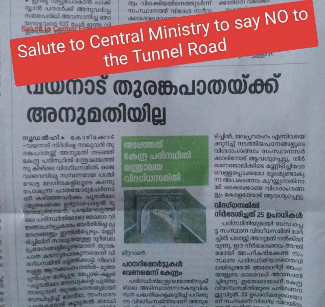 ചരക്കു വാഹനങ്ങൾക്ക് രാത്രി സഞ്ചരത്തിന് അവസരം. അനധികൃത നിർമാണങ്ങളും അനധികൃത ഭൂമി കൈവശം വെച്ചിരിക്കുന്നതും അവസാനിപ്പിക്കുക.മാറിയ കാലാവസ്ഥ യിൽ കൃഷിയുടെ സമീപനത്തിൽ മാറ്റമുണ്ടാക്കി വയനാട്ടു കാരെ സഹായിക്കുക.വയനാടിനായി മെഡിക്കൽ കോളേജ് നിർബന്ധമായും ആരംഭിക്കുക.തുടങ്ങിയ സമീപനങ്ങൾക്കു പകരം 4 വരി തുരങ്കപാത നിർമ്മാണത്തിന് പിന്നിൽ പ്രവർ ത്തിക്കുന്നത് സ്ഥാപിത താൽപ്പര്യങ്ങൾ മാത്രമായ് എന്ന് കേന്ദ്ര പരിസ്ഥിതി മന്ത്രാലയത്തിന് വ്യക്തമായിരിക്കുന്നു.