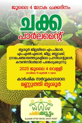 തൃശൂർ മണ്ണുത്തിയിലെ കാർഷിക ഗവേഷണ കേന്ദ്രത്തിലെ, 50 വർഷത്തിലേറെ പ്രായമുള്ളതും പ്ലാവുകളുടെ ലോകത്തെ അപൂർവ്വമായ ഒരേ ഒരു ജൈവ വൈവിധ്യവും,നൂറിലധികം മാവിനങ്ങളും,163 ജാതിയിനങ്ങളും,200 ലധികം സ്വദേശിയും വിദേശിയുമായുള്ള ഫലവൃക്ഷങ്ങളുമുള്ള,കാർഷിക ഗവേഷണ കേന്ദ്രത്തിന്റെ 43 ഏക്കർ തോട്ടം;മരങ്ങൾ വെട്ടി, പുൽകൃഷിക്ക് വേണ്ടി വെറ്റിനറി സർവകാലശാലക്ക് കൈ മാറാൻ ശ്രമിക്കുന്നു.ഈ പച്ച തുരുത്ത് സംരക്ഷിക്കാനുള്ള വിവിധ ജനകീയ പരിപാടികളിൽ ഒന്നാണ് നാളെ നടക്കുന്ന ചക്ക പാർലമെൻ്റ്.