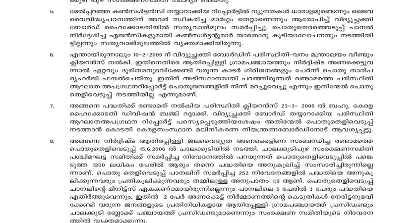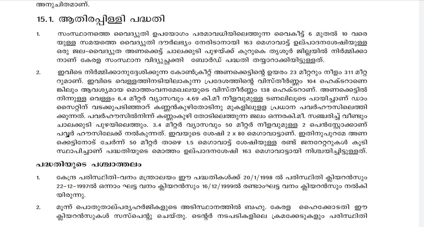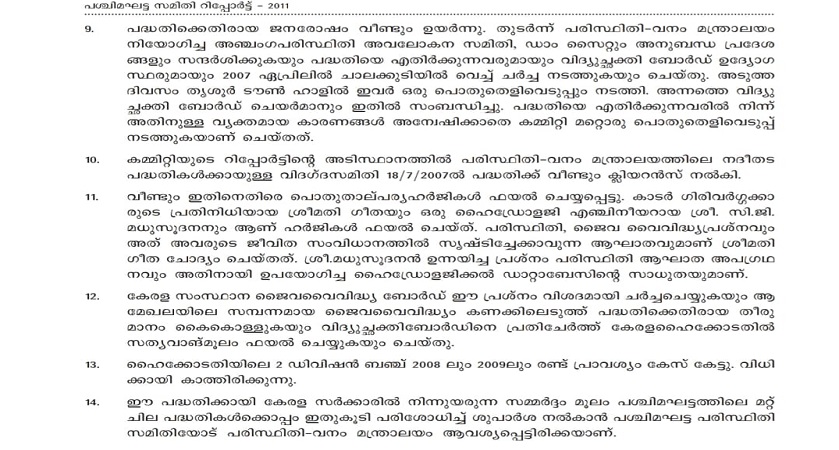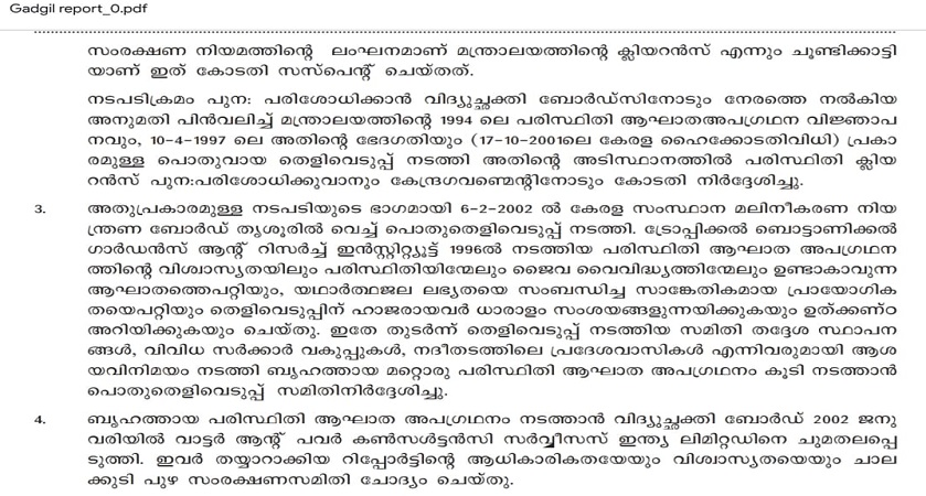 ഗാഡ്ഗിൽ കമ്മീഷൻ ആതിരപ്പള്ളി പദ്ധതിയെ പറ്റി പറഞ്ഞത് ഇപ്രകാരം...
