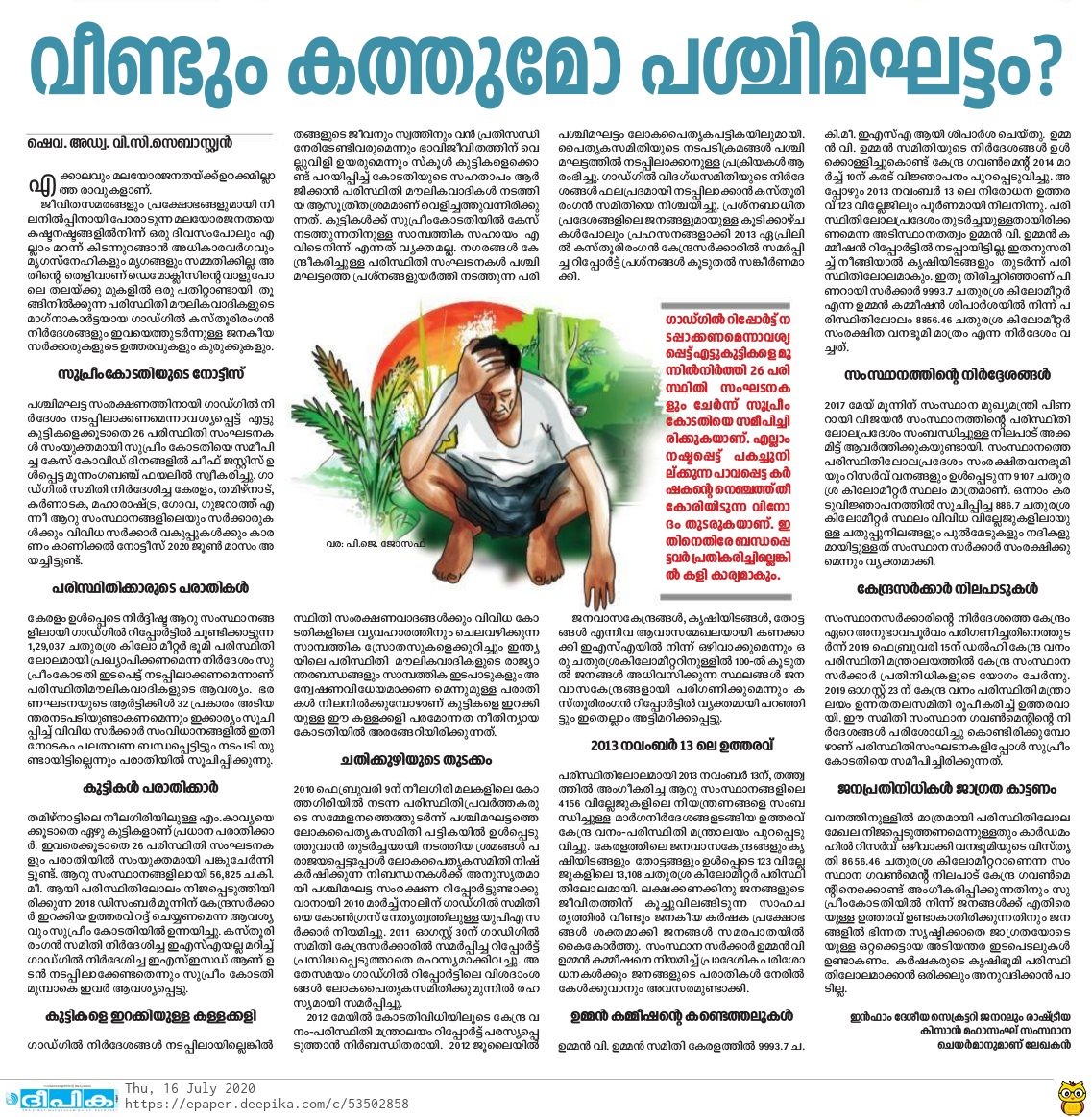 മാധവ ഗാഡ്ഗിൽ റിപ്പോർട്ടിന്റെ ഉദ്യേശ ലക്ഷ്യങ്ങൾ ഈ വാർത്തയിൽ സ്വയം വിശദീകരിക്കുന്നുണ്ട്. എന്നാൽ അവാസ്തവീകമായ പല കാര്യങ്ങളൂം പറയാൻ ശ്രമിച്ചപ്പോൾ അറിയാതെ ചില സത്യവും വിശദമാക്കേണ്ടി വന്നു എന്നു മാത്രം. ഗാഡ്ഗിൽ റിപോർട്ട് നടപ്പിലാക്കണമെന്ന് ആവശ്യപ്പെട്ട് 26 പരിസ്ഥിതി സംഘടനകൾ സുപ്രീം കോടതിയിൽ ഫയൽ ചെയ്ത കേസിന്റെ വാദം ആഗസ്റ്റ് 8 ന് ആരംഭിക്കുകയാണ്.ഇതിൽ കേരളത്തിൽ നിന്ന് കൃഷി നാശവും മൃഗശല്യവും എന്ന പേരിൽ വടക്കൻ കേരളത്തിൽ ചിലയിടങ്ങളിൽ പ്രവർത്തിക്കുന്ന വാട്ട്സാപ്പ് ഗ്രൂപ്പും കക്ഷി ചേരുന്നുണ്ടത്രെ. അവർ, കൃഷിക്കാർ എന്നു സ്വയം പറയുന്നവർ, നേരിടുന്ന പ്രശ്നങ്ങൾക്ക് എല്ലാം കാരണം ഗാഡ്ഗിൽ റിപ്പോർട്ടാണെന്നും അത് എന്തു വില കൊടുത്തും , വേണ്ടിവന്നാൽ പശ്ചിമ ഘട്ടം വീണ്ടും കത്തിച്ചു കൊണ്ട്, നേരിടുമെന്നും ഒക്കെ അവർ ഗ്രൂപ്പിലൂടെ ഭീഷണി മുഴക്കുന്നുണ്ട്.