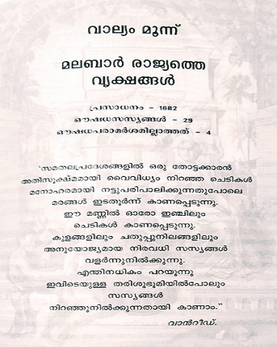 കേരളത്തിൻ്റെ ചെടിയറിവുകളുടെ സമാഹാരമാണിത്. 12 വാള്യങ്ങളിലായി ഔഷധ സസ്യവിഭാഗത്തിൽ 577 ചെടികളേയും ഔഷധ പരാമർശമില്ലാത്ത 169 സസ്യങ്ങളേയും വിശദമായി ചിത്രങ്ങളോടെ പരിചയപ്പെടുത്തുന്നു. ഈ പ്രകൃതി സംരക്ഷണ ദിനത്തിൽ പ്രകൃതി സംരക്ഷണത്തിൽ നമുക്ക് കുറച്ച് അറിവുമാകാം.